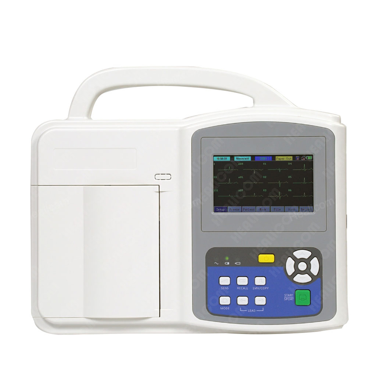 * Simultaneous 12 leads acquisition and 3-ch recording with high resolution thermal printer.