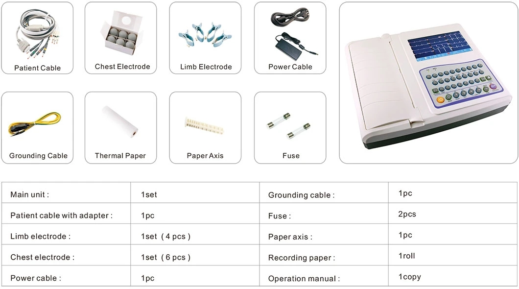 10. USB / Rs232 interface. Can be connected to Network, USB Disk, Printer and Code Scanner . ECG software is optional