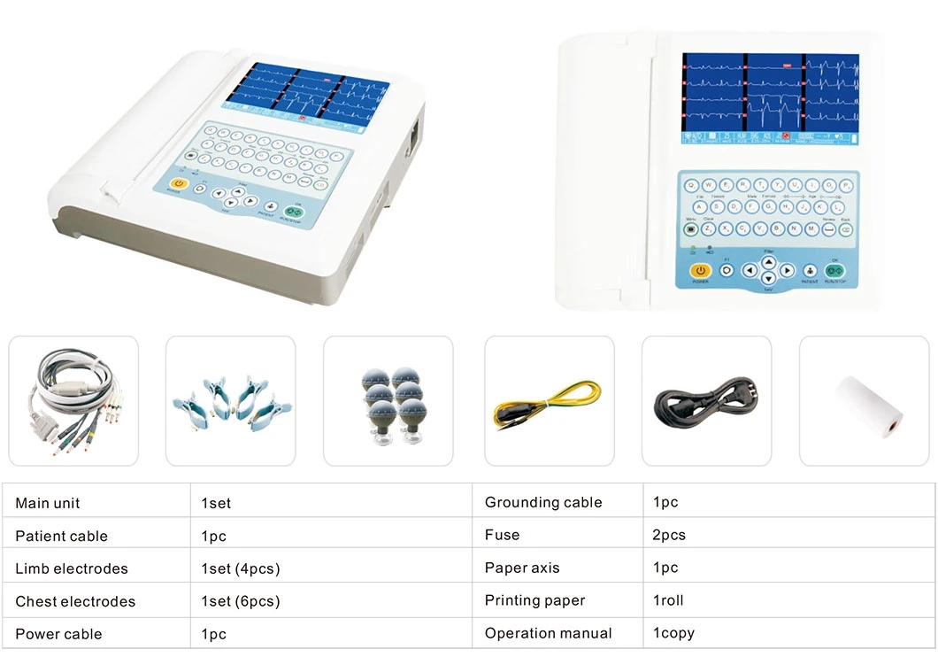 | Input circuit | Floating; Protection circuit against defibrillator effect | Recording mode | 3ch+++, 6ch, 6ch+, 12ch Default Man. Mode format is 3ch+++ Default Auto. Mode format is 12ch |