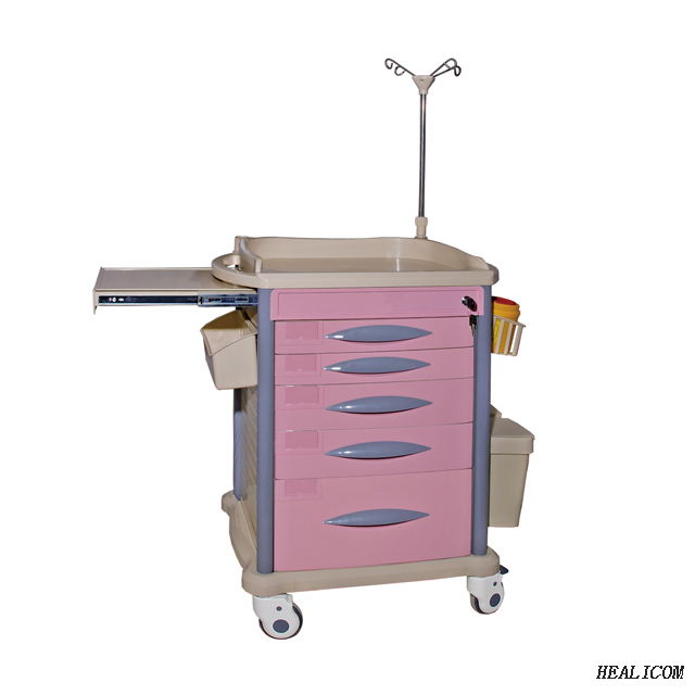 HET-79073B1-PK High quality ABS Hospital Furniture Emergency Trolley