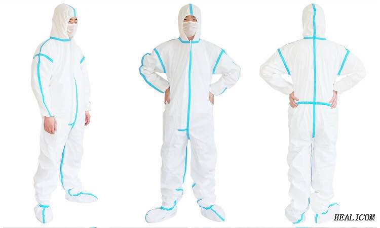 The Blue sealing strip tightly stick to the each stitching seams parts of coveralls to make the coveralls with more strong sealability performance. To resist the permeation of fluid better.